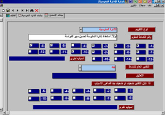 تم عمل نظام خاص بقسم التقويم بناءاً على دراسة وتحليل الاستمارات المستخدمة بالقسم و ذلك لتقويم الأنشطه المختلفة والوقوف علي حال التعليم في المدارس وتم تجربتها على حوالي ( 600 ) استمارة معلم و ( 208 ) للادارة المدرسية و ( 171 ) للمبنى المدرسي و ( 125 ) للانشطة الاصفية