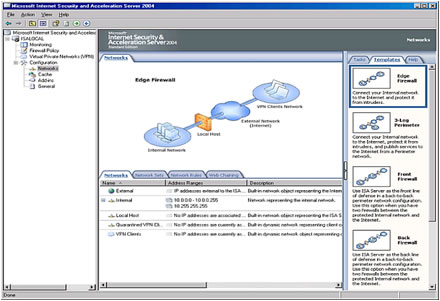 - تم تخصيص SERVER للعمل كبوابة للانترنت حيث تم تثبيت برنامج (ISA Server Management) المزود ببرنامج حمايةFirewall) ) لمنع الاختراق وتزويد السرعة.