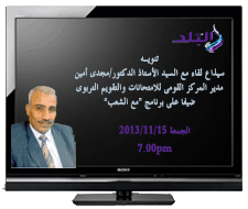 سيذاع لقاءً تليفزيونياً على الهواء مباشرة للأستاذ الدكتور / مجدى أمين على قناة ( صدى البلد ) ضيفاً فى برنامج مع الشعب فى حوار عن المركز وذلك يوم الجمعة الموافق 2013/11/15 فى تمام الساعة السابعة مساءاً.